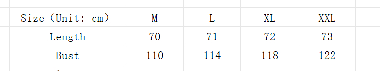 Sizes: M, L, XL, XXL (if your size is between two, we recommend choosing the larger one)